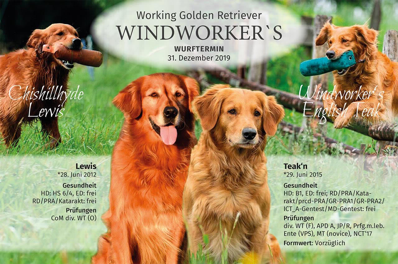 Wir planen mit Windworker's English Teak "Teak'n" unseren G-Wurf. Als Deckrüden haben wir Chishillhyde Lewis gewählt. Unser Wurf wird um den 31. Dezember 2019 erwartet!